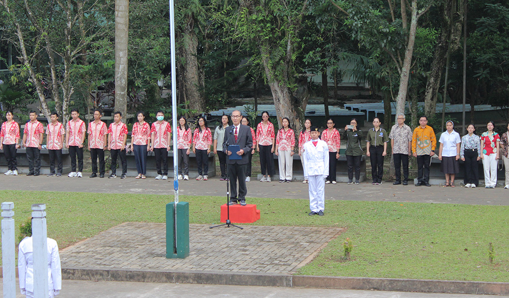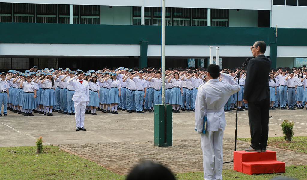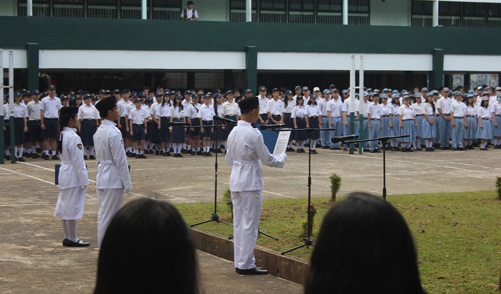 Upacara berlangsung dengan sangat khidmat, para petugas melaksanakan tugasnya masing-masing dengan penuh semangat. Setelah selesai upacara, Bapak Drs. Patrice, M.M., selaku Inspektur Upacara memberikan apresiasi kepada perwakilan tim petugas upacara yaitu Careis Cu sebagai pemimpin upacara dengan memberikan penghargaan berupa pin yang disematkan di bagian dada.